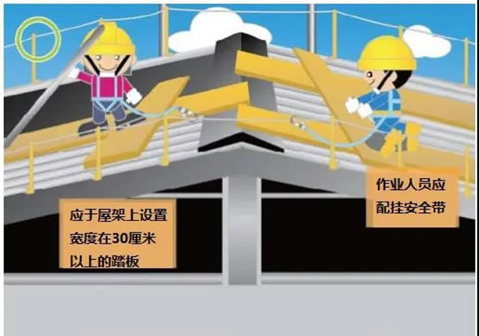 (2)重點(diǎn)部位項(xiàng)目,除在危險(xiǎn)部位設(shè)置護(hù)欄,立網(wǎng)、滿鋪架板、蓋好洞口外,還應(yīng)在操作人員下方設(shè)平網(wǎng)和檢查作業(yè)人員是否正確使用防護(hù)用具,嚴(yán)格執(zhí)行安全管理專業(yè)人員旁站監(jiān)督制度。