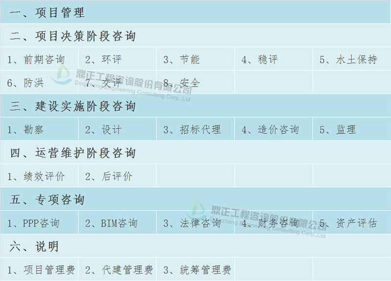 本文提供的全咨取費參考標準包含以下內容: