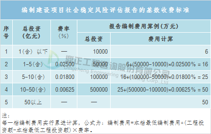 按照上述調整系數對建設項目社會穩定風險評估咨詢服務收費進行調整后,編制建設項目社會穩定風險評估報告的收費低于6萬元的,按6萬元計取,高于50萬元的按50萬元計??;評價建設項目社會穩定風險評估報告的收費低于4萬元的,按4萬元計取,高于25萬元的,按25萬元計取。