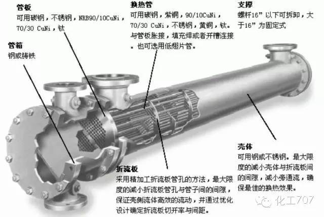 管殼式換熱器可按結構形式分為固定管板式換熱器,浮頭式換熱器,U型管式換熱器和填料函式換熱器等類型。